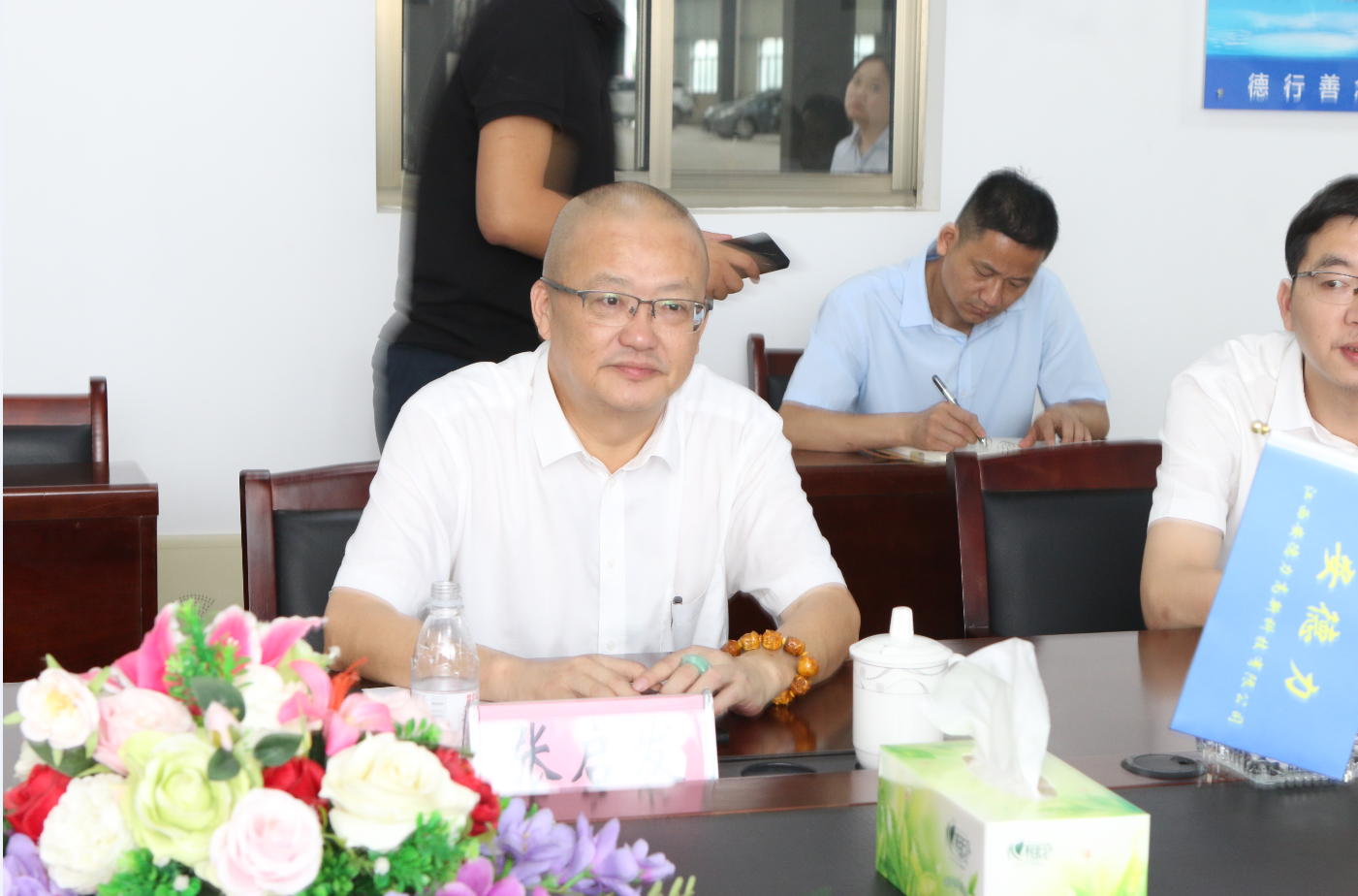 在座談會(hui) 上,張啟發董事長代表3044am永利集团集團對前來參觀交流的嘉賓表示熱烈歡迎,並對公司產(chan) 業(ye) 情況做了詳細介紹。